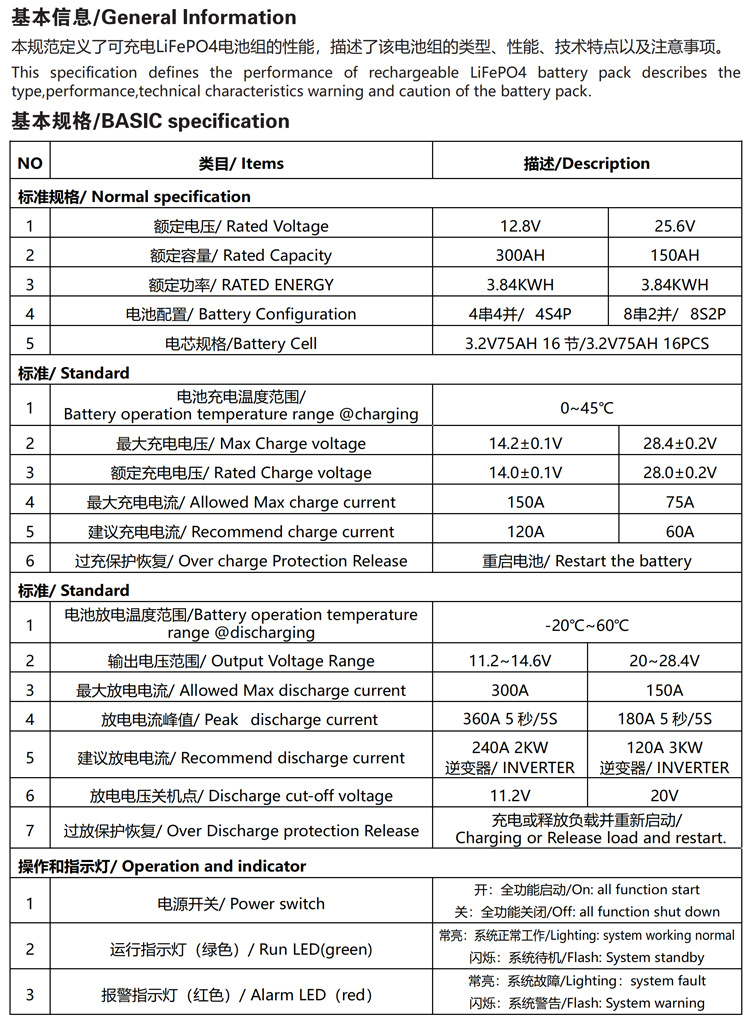 12V 300AH 3.84KWH锂电储能系统
